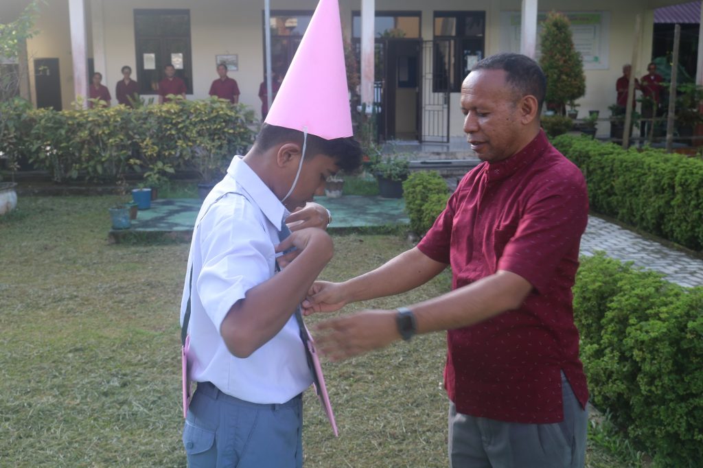 Kegiatan yang berlangsung selama 3 hari, Senin 15 Juli 2024 – Rabu 17 Juli 2024, dibuka dengan apel yang dipimpin oleh Kepala Sekolah, RD. Stanislaus Bani, S.Ag. Dalam apel ini, Romo Stanis memasangkan atribut MPLS kepada perwakilan siswa sebagai tanda dimulainya kegiatan MPLS. Adapun tema kegiatan MPLS pada tahun ini adalah “Menjadi Garam dan Terang Dunia dalam Mewujudkan Profil Pelajar Pancasila”.